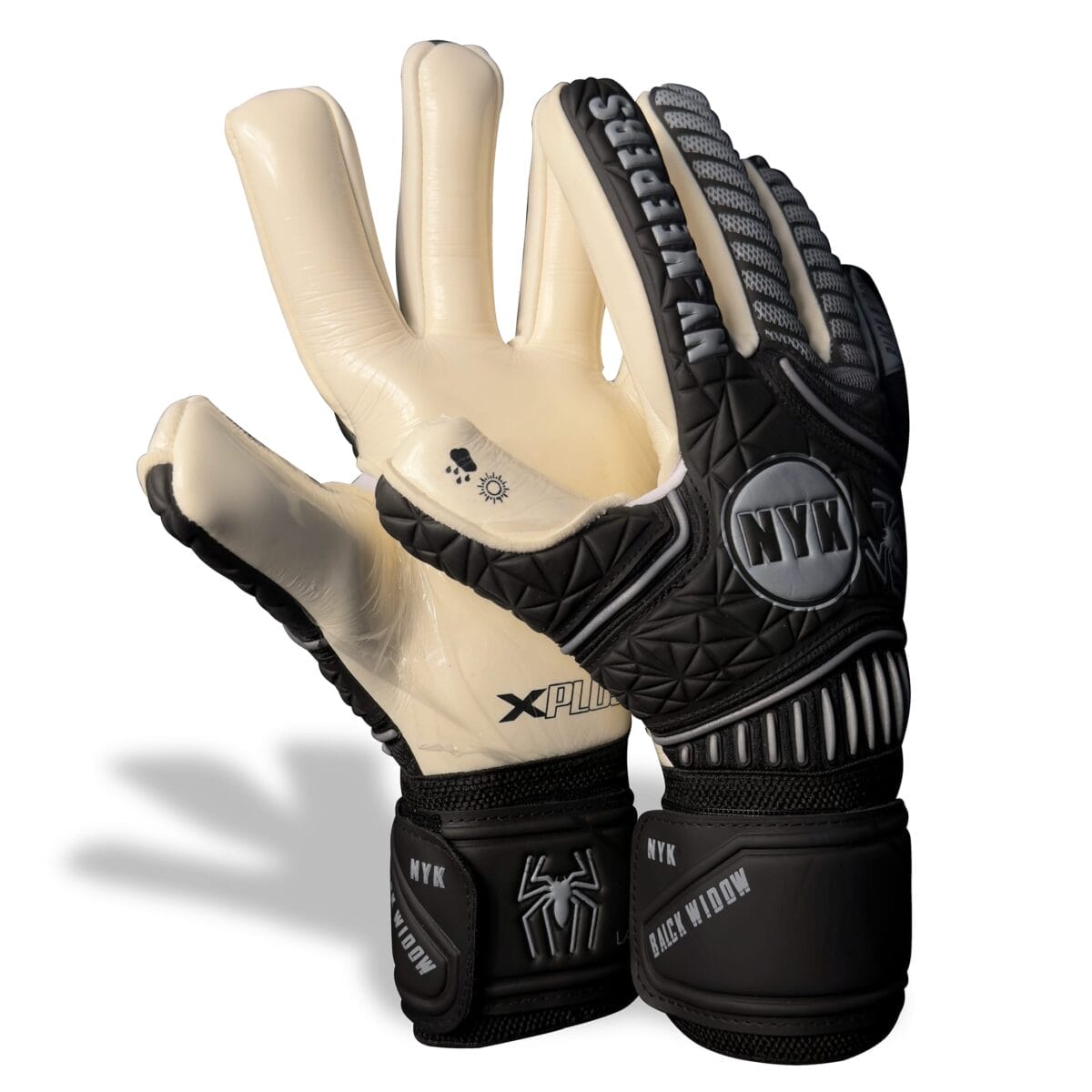 Because they combine elite grip, technical construction, and unique style. With the choice of X-Basic or X-Plus German latex, a snug negative cut, breathable mesh zones, and a secure closure system, the Black Widow Control goalkeeper gloves are built for keepers who demand more than average gear. They are tools for domination, crafted to elevate your game.